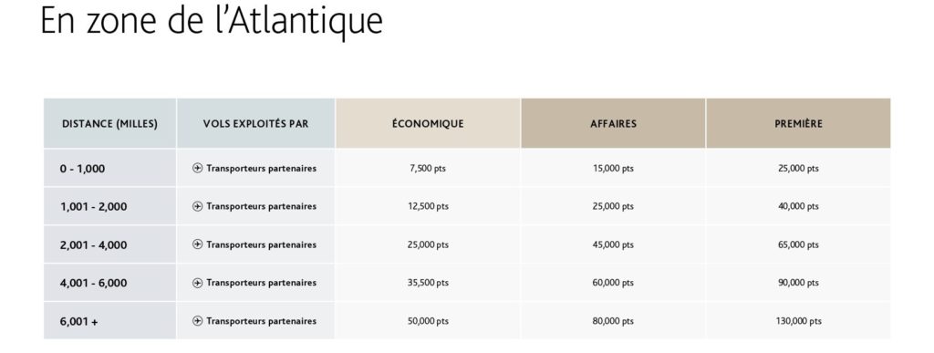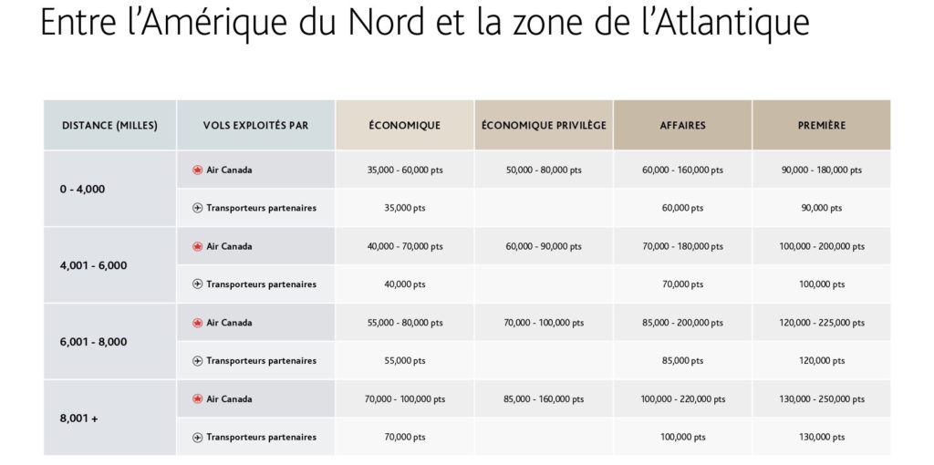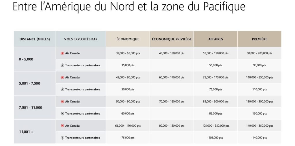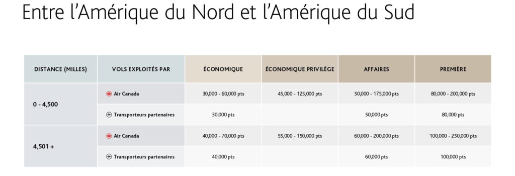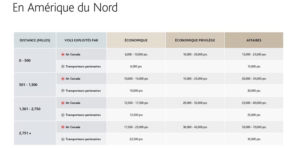 Et le coût en points est différent en fonction d’un vol avec Air Canada ou l’un de ses partenaires.