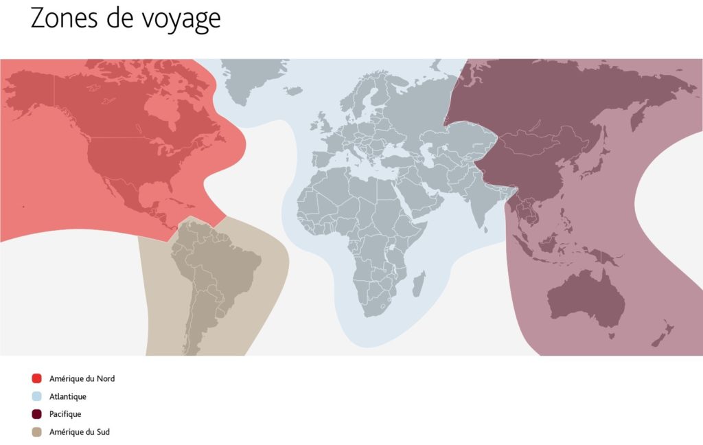 • de chaque zone de voyage (Atlantique, Pacifique, etc.)