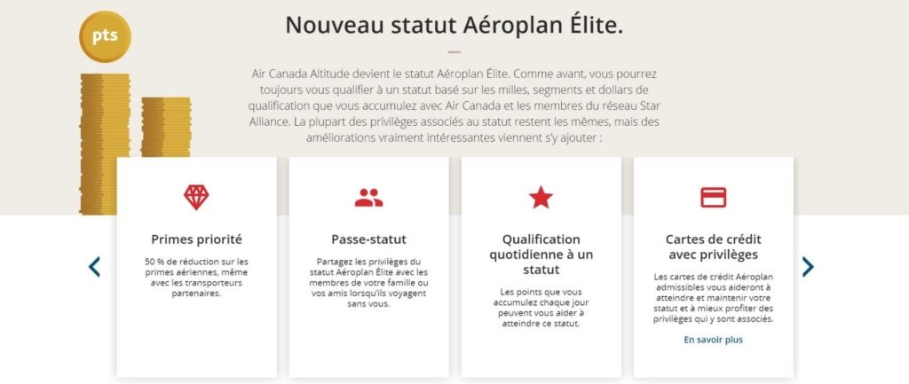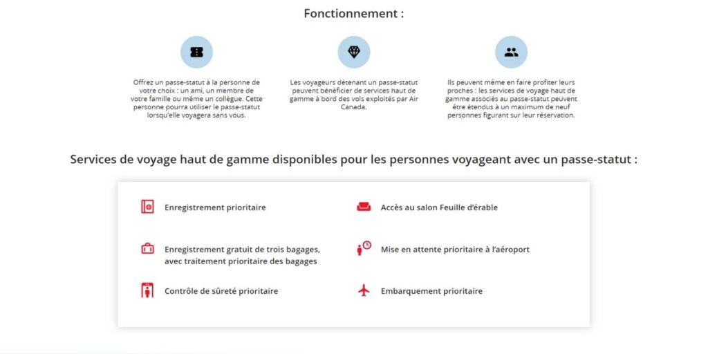 Air Canada a aussi l’option de la Passe-statut dans le programme Aéroplan.