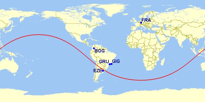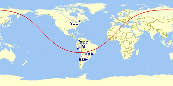 • des voyages entre chaque zone (Atlantique vers Pacifique, Amérique du Nord vers Amérique du Sud, etc.)