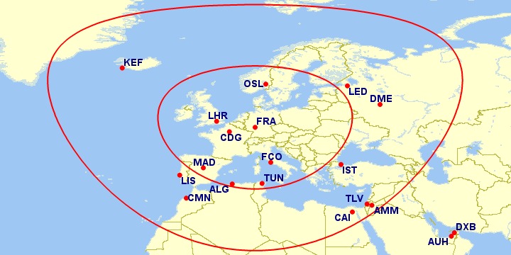 Par exemple, un vol Montréal – Zurich a une distance de 3 736 miles. Ce voyage se classe donc dans la catégorie 0 – 4 000 miles pour les voyages entre les zones Amérique du Nord et Atlantique. Le coût en points est de 35 000 points en classe économique.