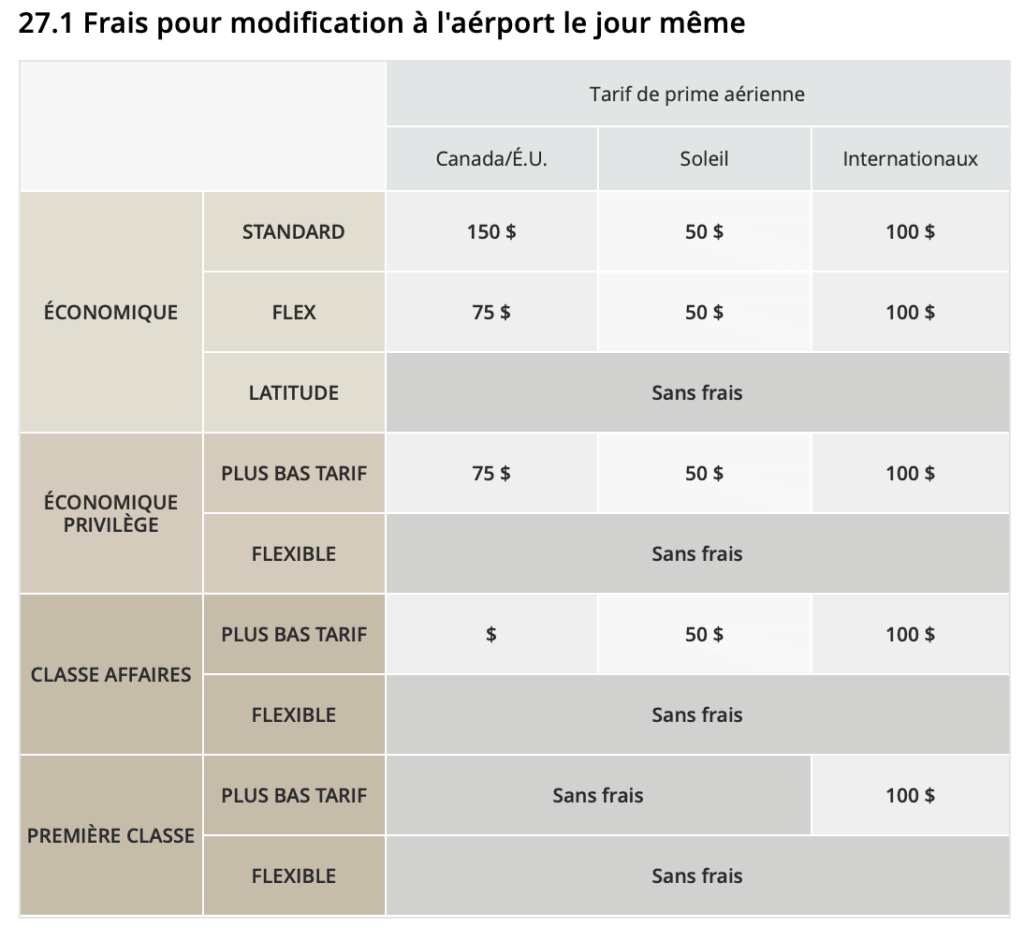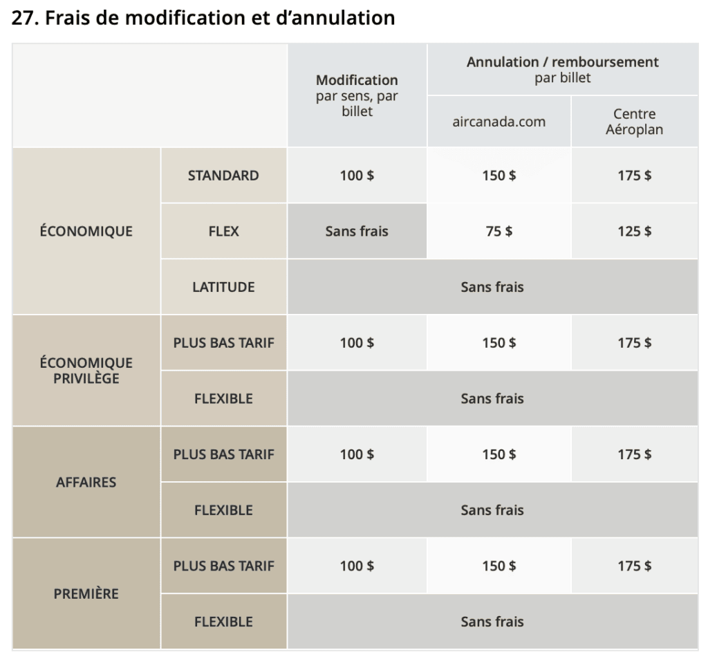 Les frais d’annulation s’établissent quant à eux de 0 $ à 175 $ en fonction du tarif payé et de la méthode d’annulation.