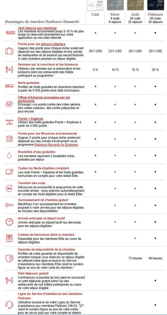 ***Le programme Radisson Rewards Americas n’est plus en vigueur. Il a fusionné avec le programme de fidélité Choice Hotels depuis le 18 juillet 2023. Cependant, Radisson Rewards est toujours en vigueur dans les hôtels Radisson à l’extérieur des Amériques. ***