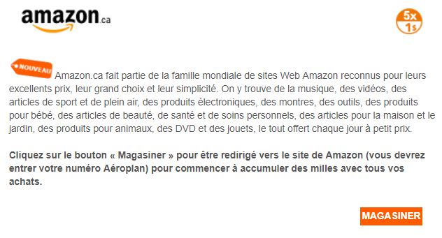 Puis du 1er mai au 11 mai 2018, vous obtiendrez 2x les milles Aéroplan pour tous vos achats sur Amazon.ca via la netBoutique d’Aéroplan.
