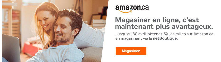 Dans le cadre de ce lancement, Aéroplan propose à ses membres une belle promotion. Du 24 avril au 30 avril 2018, vous obtiendrez 5x les milles Aéroplan pour tous vos achats sur Amazon.ca via la netBoutique d’Aéroplan (à l’exception de l’achat de cartes-cadeaux amazon.ca).