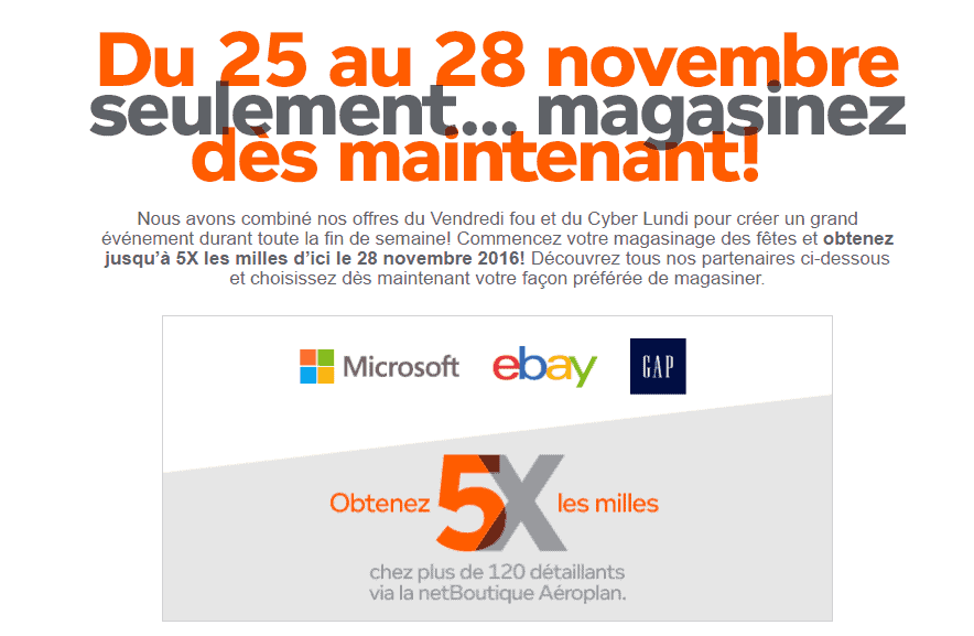 Le portail web d’Aéroplan, la NetBoutique Aéroplan, propose également une page spéciale pour le Vendredi Noir.
