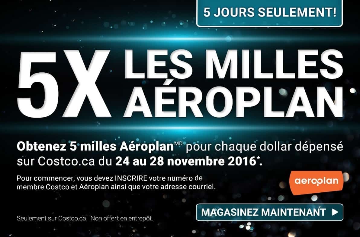 De plus, le site en ligne de Costco, Costco.ca propose également d’obtenir 5 milles aéroplan / dollar dépensé !
