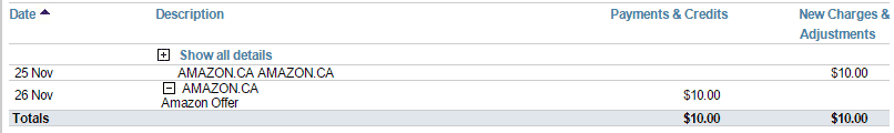 Après avoir fait une belle petite promotion en partenariat avec Esso, American Express récidive avec Amazon.ca en offrant un crédit de 10$ pour 10$ d’achats sur Amazon.ca