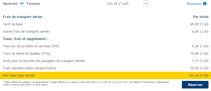 Par exemple, le trajet Montréal-Toronto ne coûte que 123$.