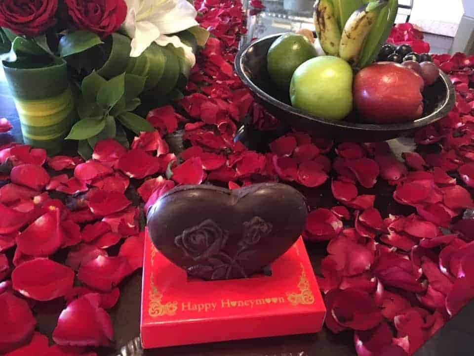 Premier cadeau est un upgrade en Suite Plunge pool (environ $1100 la nuit!), chapeaux et sac de plage, suivi d’un magnifique bouquet et un délicieux gâteau, un panier de fruit, 1h de massage au Spa (valeur de $180) et pour finir un ensemble de produit de beauté au chocolat Une expérience vraiment exceptionnelle et un séjour inoubliable!!!
