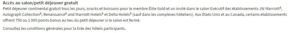 C’est un avantage peu connu de la carte de Platine d’American Express… et pour cause! Elle offre le statut Or chez Marriott Bonvoy. Mais comme les deux programmes sont progressivement reliés, vous obtenez également le statut Gold chez Marriott, qui a nos yeux offrent plus d’avantages comme le petit-déjeuner gratuit / accès aux salons de nombreux hôtels du groupe Marriott.